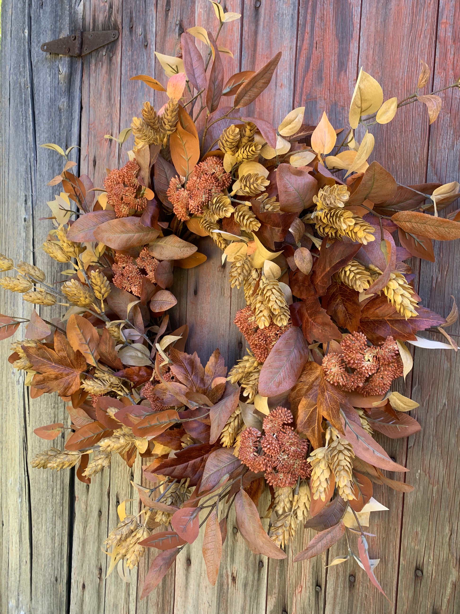 Accent your home this fall season with our Golden Hops & Rustic Eucalyptus Wreath! Made with faux golden hops and eucalyptus, this wreath adds a touch of rustic charm to your front door or interior decor. Perfect for autumn, this wreath brings natural beauty and warmth to any space.