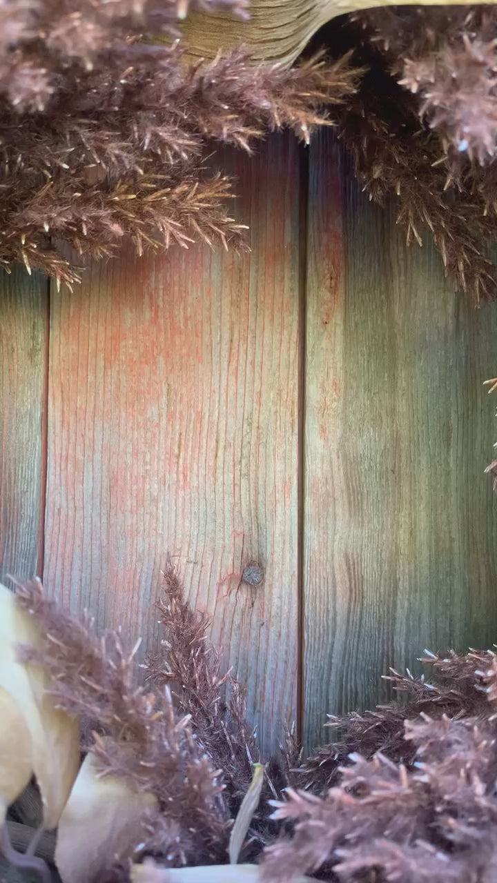 Add a touch of nature to your home decor with our Pine Cone and Pampas Grass Wreath. Made with pine cones and faux pampas grass, this fall wreath is perfect for your front door or as a seasonal decoration. Handcrafted just for a you.