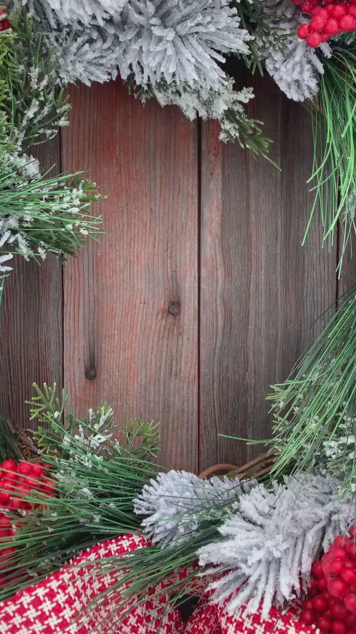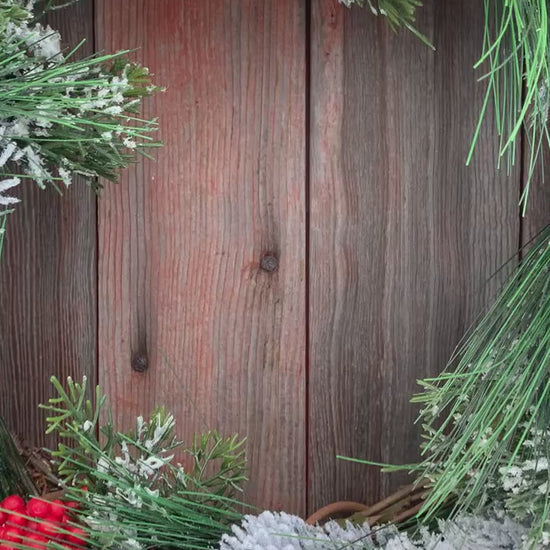 Snowy Pine and Red BerryWinter Wreath
