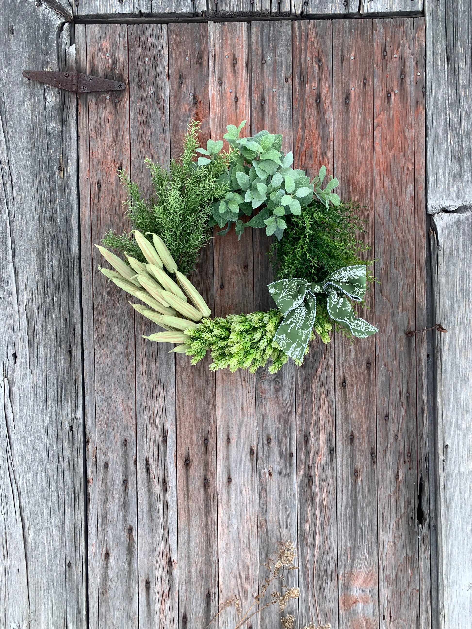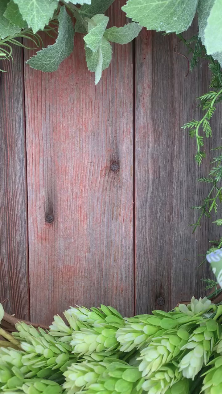 Handcrafted with thoughtfully gathered greenery, soft botanical textures, and natural seed accents, Finished with a soft green botanical ribbon, this versatile wreath is perfect for year-round display.Designed to complement farmhouse, cottage, and classic décor, each wreath is uniquely handmade for a one-of-a-kind artisan touch.