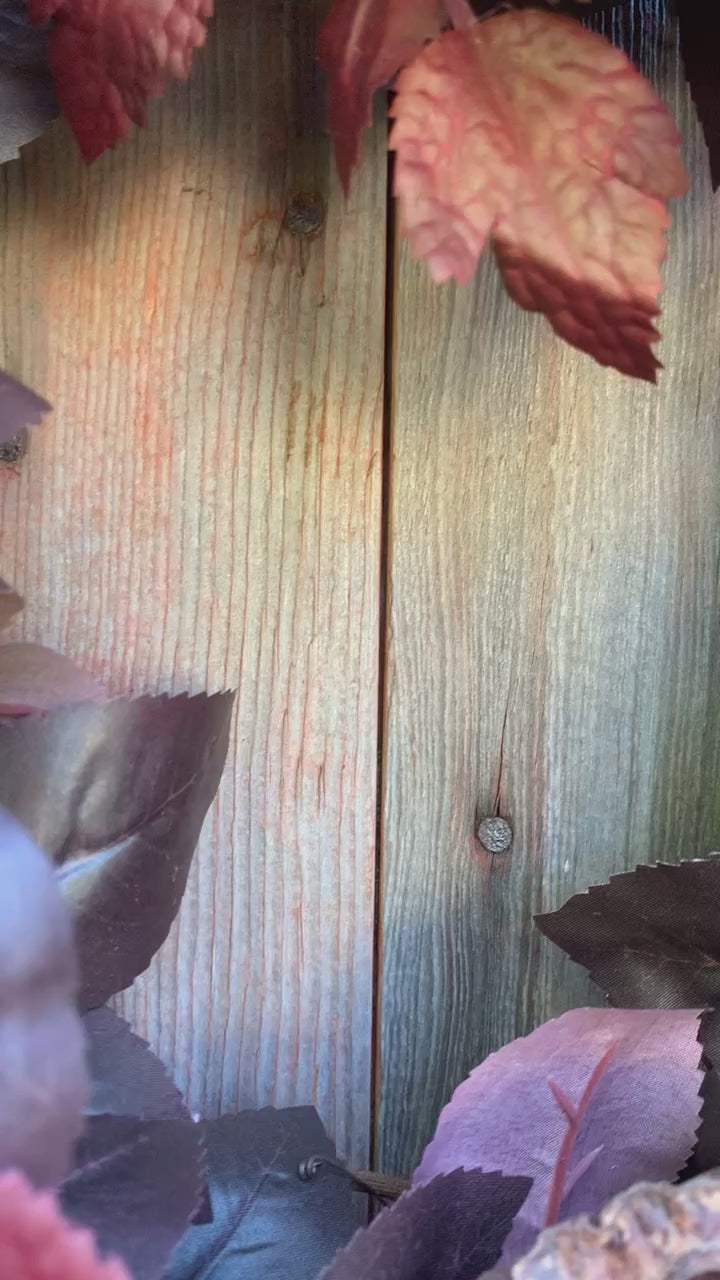 Enhance your front door decor with our Black Plum and Cimicifuga Leaf Wreath. Made with faux materials, this wreath features a moody color palette that evokes a sense of elegance and sophistication. Elevate your home's curb appeal and add a touch of natural beauty with this unique wreath.